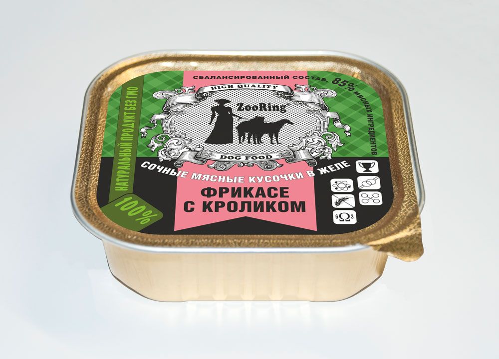 ZooRing консервы для собак кусочки в желе Фрикасе с кроликом