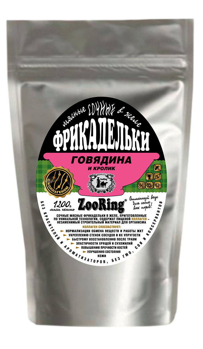 Состав: мясные ингредиенты в кусочках - 70%, мясо говядины и субпродукты, кролик не менее 4%, витамины, минеральные вещества (витамин A - 200 ME, витамин D3 - 45ME, витамин E - 15 мг, витамины группы B, PP, фосфор - 0,2 мг, кальций 0,35 мг, калий, натрий, магний, микроэлементы Zn, Cu, Mn, йод), пищевой коллаген.