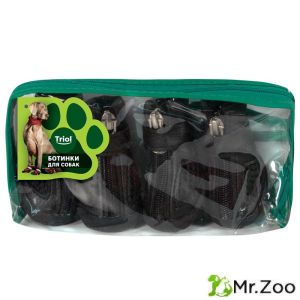 Комплект из 4-х ботинок для собак с функциональной прорезиненной подошвой - незаменимый аксессуар индивидуальной защиты лап животного от воздействия агрессивных жидкостей, дорожных химреагентов, бензинов и масел на проезжей части дорог. Прочные и комфортные, они сохраняют лапы собаки чистыми и сухими в ненастную погоду и защищают их от истирания о твердое покрытие при длительных и интенсивных нагрузках. Размер изделия: 40х40х40мм. Цвет: черный.