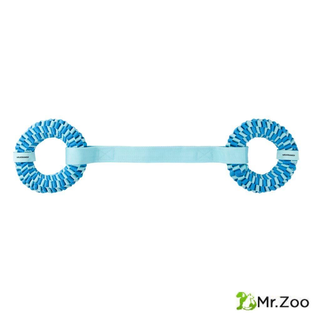 Игрушка-перетяжка Mr.Kranch для собак Плетеное кольцо-спираль двойное на ленте диаметр 12 см голубое