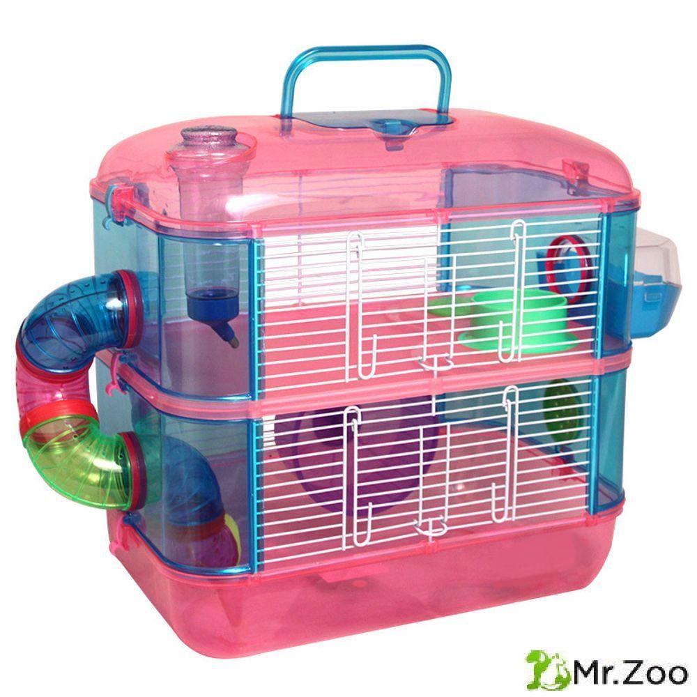 Яркая двухэтажная клетка прямоугольной формы - целый развлекательный комплекс для грызуна, который занимает немного места и отлично подходит для мелких домашних животных вроде крыс, мышей и хомяков. В комплектацию изделия также входят: пластиковая миска, поилка с носиком, уютный домик, труба-тоннель и беговое колесо. Кроме того, клетка оборудована удобной ручкой на крыше, облегчающей процесс переноски изделия. Размер изделия: 400х260х400мм.