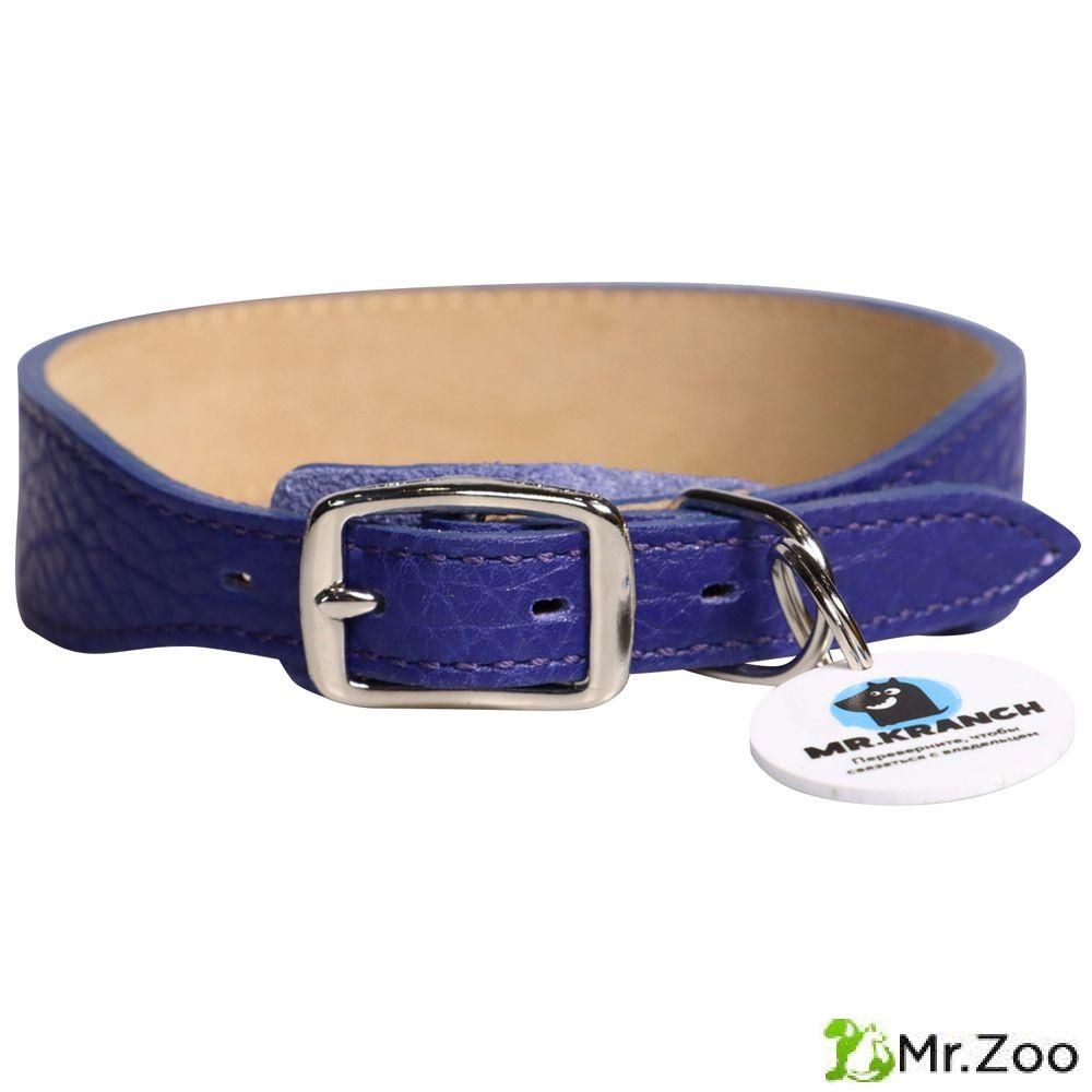 Ошейник Mr.Kranch для собак из натуральной кожи с QR-адресником 38-45см синий