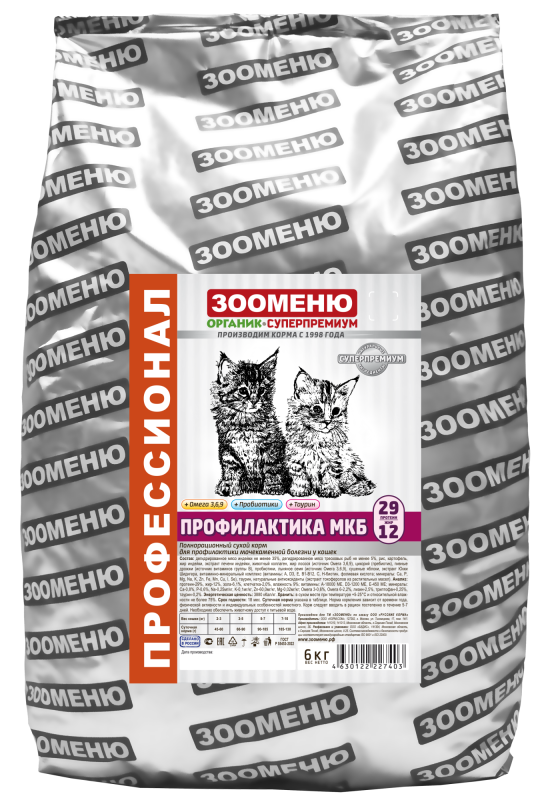 ЗООМЕНЮ-ОРГАНИК КОРМ ДЛЯ КОШЕК "ПРОФИЛАКТИКА МКБ" (ИНДЕЙКА)